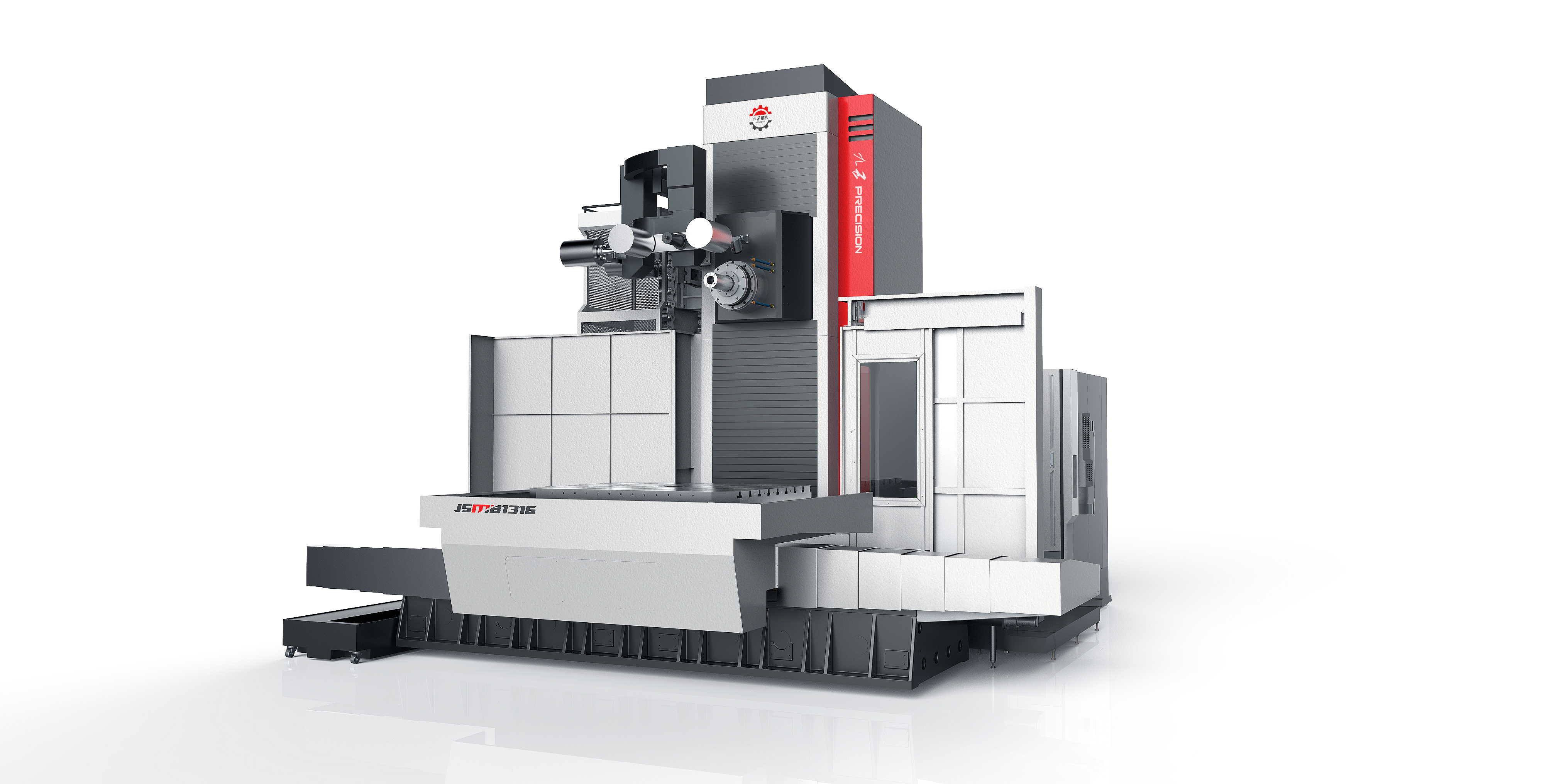J5TH6413數控臥式銑鏜床為單立柱,側掛箱體,十字滑臺結構形式。主軸搭載兩段式行星齒輪減速箱,提供主軸最完美的切削性能,采……